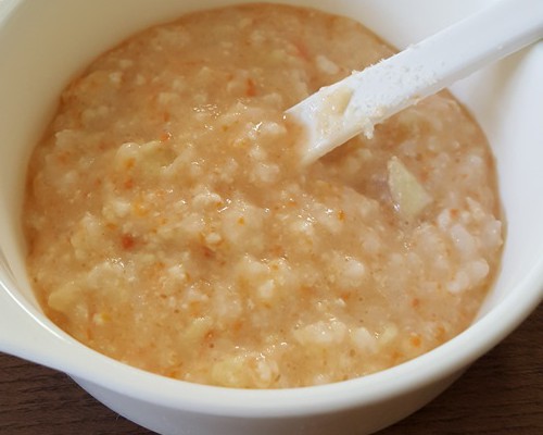 お腹が空いていたのか、食べ始めはグズグズでしたが、半分くらい食べた辺りからご機嫌に食べてくれました。