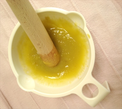 一週間目は恐る恐るお粥だけをあげてきましたが、もぐもぐし、少しお粥にも慣れてきた様なので、他のものをあげることに…