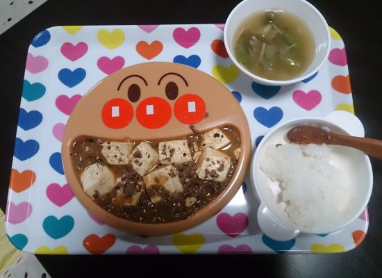 マーボー豆腐は、ひき肉をしっかり炒めたら水・出汁・醤油で味をつけて、とろみをつけてあります。