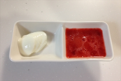 苺をヨーグルトに混ぜてあげてみたところパクパク美味しそうに食べてくれました。