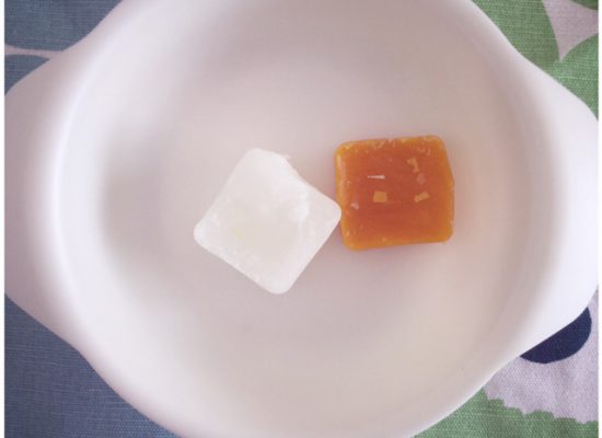 ⑷製氷皿に小さじ1ずつ入れ、冷凍庫で凍らせます。