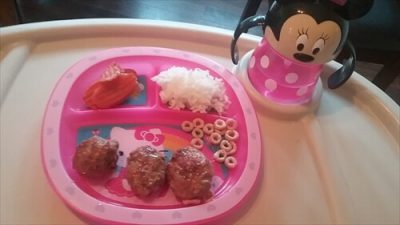 小さいハンバーグ、冷ましたものを手づかみで食べていました。