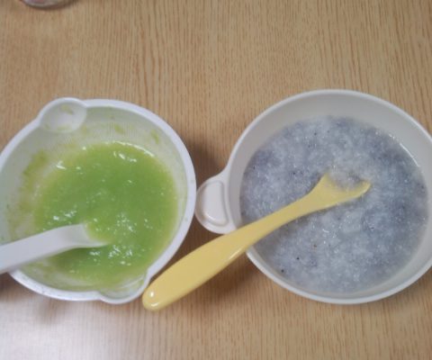 季節が冬で、毎週の様に風邪をひいていた事もあり、全体的に離乳食の進みが遅く、少し遅めの二回食です。