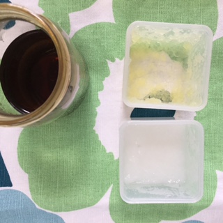 ⑹凍ったら製氷皿から出して、ジップロックに入れ保存します。