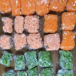 それぞれ10gずつ(初めての食材は小さじ1、2も)量ってラップで包み、冷凍しました。
