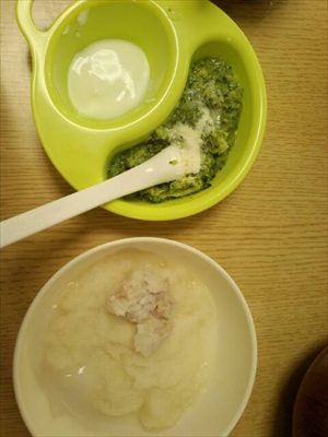 やっぱり青くささ対策、うちのユウくんには乳製品が良いみたいです。(粉チーズ、粉ミルク、ベビーフードのホワイトソース等)