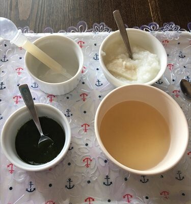 (お粥は炊いたもの&魚はキープの冷凍お粥キューブを「チン」)