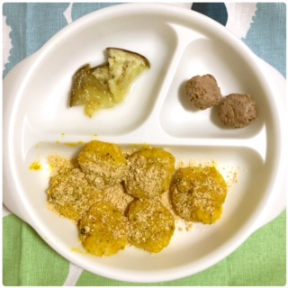 そのままだとべたべたするので、きな粉をまぶしてあげました。