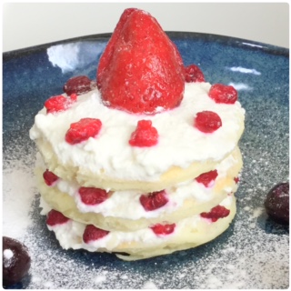 (5)(4)で作った土台に水切りヨーグルト、ラズベリーを乗せてデコレーションする。
