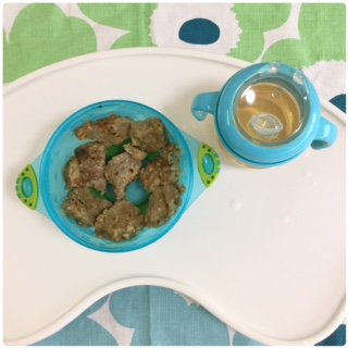 朝ごはんはバナナとオートミールのおやき、朝はよくオートミールをあげています。