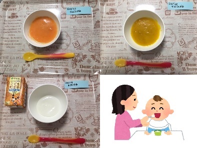 大さじ1くらい食べるといやいや~と体を反らし出すのですが、これは休憩してもう少し食べてもらったほうがよいものなのか・・・今のところはゲリピッピのこともあり、いやがったらごちそうさまにしているのですが、体調が落ち着いてきたら、じっくりゆっくり食べてもらおうかなと思います^^