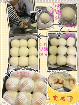 ⑤上に来てた方を下にして、ガス抜きして丸めなおして、型に並べる
