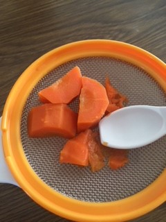 にんじんのペーストは、おかゆと混ぜながら食べさせるとよく食べてくれました。水分が少ないと、飲み込みにくいみたい。お粥大好きですが、にんじんも大好きみたいです!甘いのかな?よく食べてくれるとこちらも楽しいです。