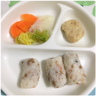 →やっぱり食べました。単品で食べてくれなくても、おにぎり入れると何でも食べてくれます。