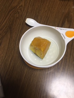 15日目、今日はおかゆ小さじ3、かぼちゃ小さじ1とにんじんも小さじ1食べてくれました。でもにんじんの方が好きみたい。お野菜好き嫌いなく食べてくれる子になるといいなあ(^^♪