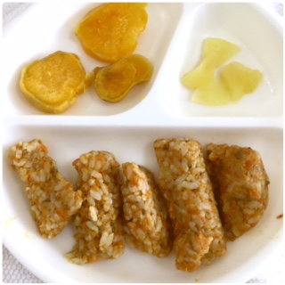レバーペーストのままでは食べなそうなので、おにぎりにしました。