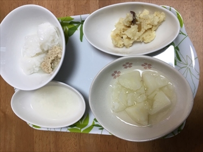 まずはお粥と鯛とジャガイモをYUKIに食べさせる