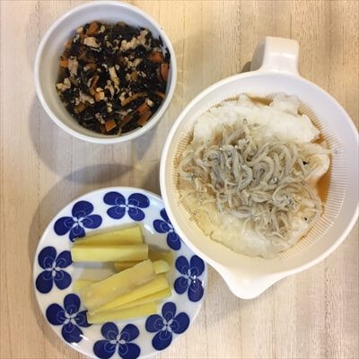 乾燥ひじき5gを水に30分つけて戻し、細かく刻みます。