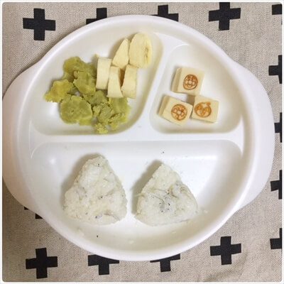 しらすはお湯で塩抜きし、小さいおにぎりにしました。