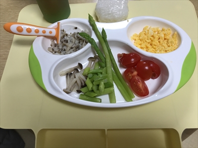 最近は一切親は食べるのを手伝いません。自分で食べたがります。めっちゃこぼすけど(^_^;)