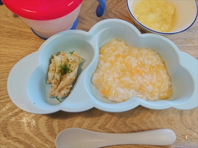 お腹いっぱいになってしまったのか、コーンクリームがお気に召さなかったのか。。。うーん。まぁ、お粥完食してるので良し!