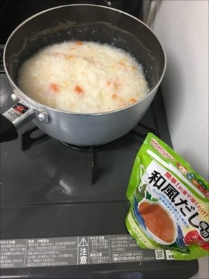 人参・玉ねぎ・大根とお粥を炊き込み