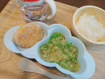 離乳食後期の王道豆腐ハンバーグをはじめて作ってみました。