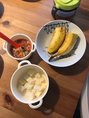 その後少し落ち着いたのでつるっと食べやすいお豆腐とぶどうをあげてみるとペロッと完食しました。水分もしっかり摂ってパタンと眠り始めたので、そのまま寝かせることに。