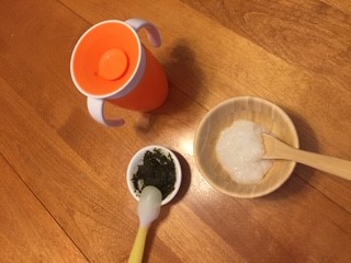 お粥は今日から7倍粥にしてみました。結構米感残ってる~。食べてくれるかな。