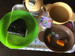 帰路にセブンイレブンで小さなおにぎりが2こ入ったセットを買いYUKIの夕食にすることにしました。