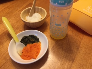 七倍お粥、にんじんとさつまいものピューレ、チャイニーズケール