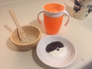 ライスシリアルを最初全然食べてくれなくて、プルーンとヨーグルトを途中から混ぜると食べてくれました!