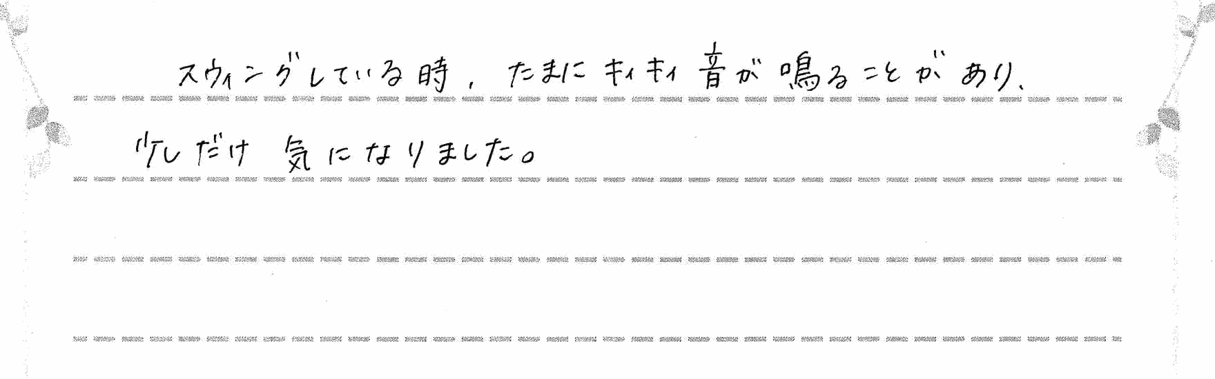 スウィングしている時、たまにキィキィ音が鳴ることがあり、少しだけ気になりました。