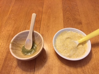 なぜか離乳食初めて、息子くん号泣(>_<)