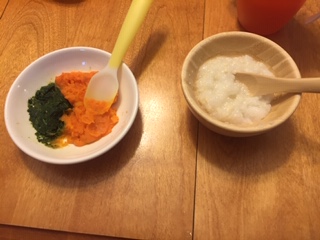 小松菜のピューレはあまりお気に召さないらしく、少し残しました。