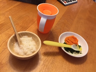 今日はバナナを食べたとき以来に、離乳食の途中で戻してしまいました。
