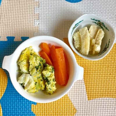 ちなみに、蒸しパンもバナナと一緒にあげると食べます。