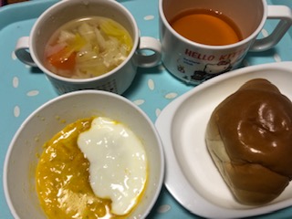 いつもは食パンだったんですけど、ロールパンにしてみたら