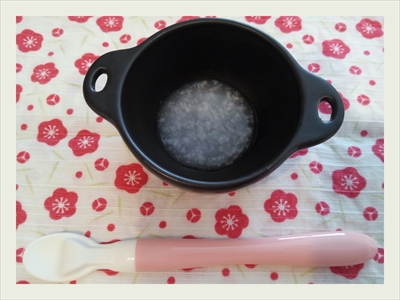 本日は離乳食スタートということで、まずは10倍がゆを小さじ1から。