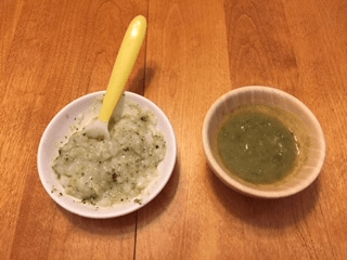 スープは同じ量を2回おかわりしました。最後は再び歯ぐずり?で大泣きし、少し残しました。