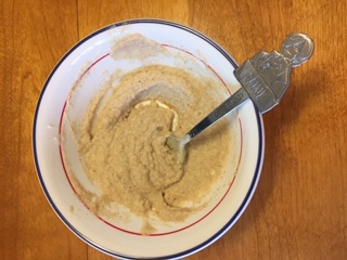 オーツとチアシードのシリアル+ビーナッツバター+ヨーグルト