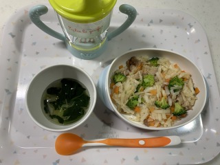 まだ大人の食事を取り分けてあげることが出来ないので、少しでも手間を減らす為に大人の食事で使っている食材を少し取り分けたり、似せたメニューを作ってあげると、1から別々に作るよりも少しは負担が減ります。