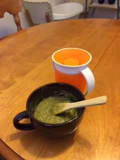 オーツとチアシードのシリアル+洋ナシのピューレ(朝の残り、写真撮る前に食べちゃいました。。)