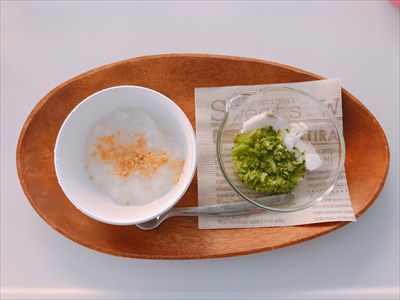 ブロッコリーのつぶつぶが楽しいのか、ブロッコリーが口に入るたびに、テンション高めにモグモグして、完食しました。