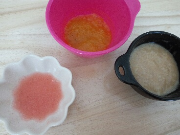 Aちゃんの反応は、「酸っぱ~(>_<)」という顔。甘酸っぱいからね・・・。でもとろみをつけていたからか、なんやかんやで完食。1歳の誕生日のころには、また食べさせてあげれるかな・・・。