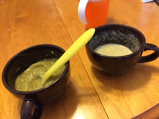 シリアル+洋ナシのピューレ(朝ごはんの残り)