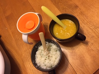先日二口しか食べてくれなかったかぼちゃスープは完食すらしなかったものの、割と食べてくれました。
