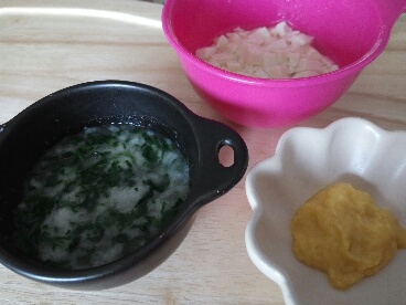 ・パンがゆ&ほうれん草&たまねぎ 小さじ7 〇