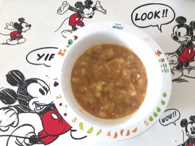 フルーツを荒く潰してあげてもパクパクとスムーズに食べるのですが、野菜の場合は顔をしかめます。大きめの塊はペロっと口の外に出しながら食べていました。騒ぎながらも全部食べました。続けていればそのうち野菜の歯ごたえにも慣れるといいのですが。