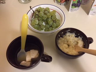最初に食事と持っていくと、フルーツを食べたい!と泣きそうな気がして。